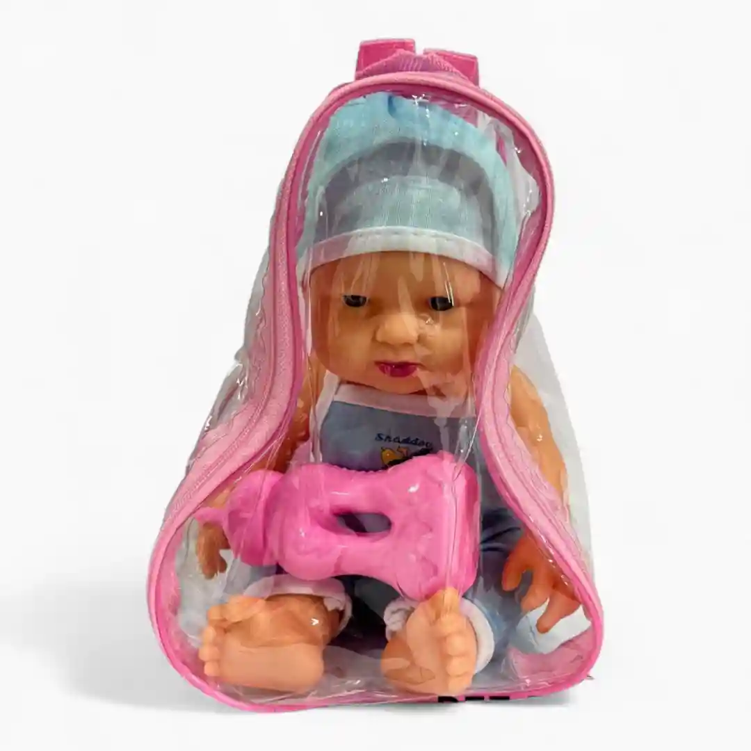 • Presentación de Lujo Portátil: Este set se destaca por su empaque. La muñeca viene cuidadosamente guardada en una mini-mochila transparente con cremallera y asas de color rosa brillante. Esta mochila es perfecta no solo para el punto de venta, sino que se convierte en un accesorio de juego funcional, enseñando a los niños a empacar y llevar a su bebé consigo de forma cómoda y organizada.