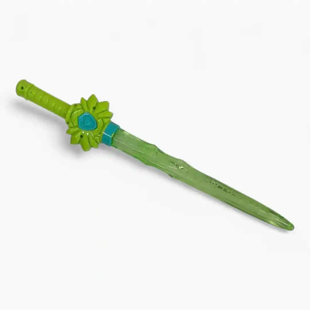 • Diseño de Espada Vibrante: La espada tiene un mango de color verde limón con detalles texturizados para un mejor agarre. La hoja es transparente con líquido de burbujas visible en su interior, lista para la acción.