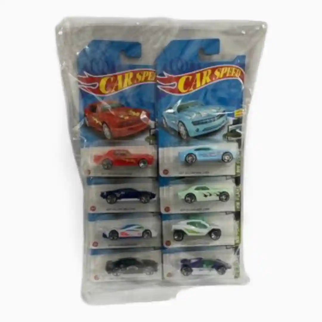 - Temática de Carreras: Cada carrito viene en su propio blister con un diseño temático de carreras de coches (Car Speed), y están identificados como «Hot Selling Race Cars», lo que resalta su popularidad.
