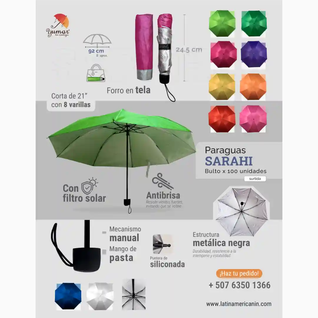 - Usos Ideales: Producto ideal para el consumidor que busca un paraguas robusto y duradero para el uso diario, especialmente en zonas propensas al viento. Su gran variedad de colores lo hace atractivo para todas las edades.