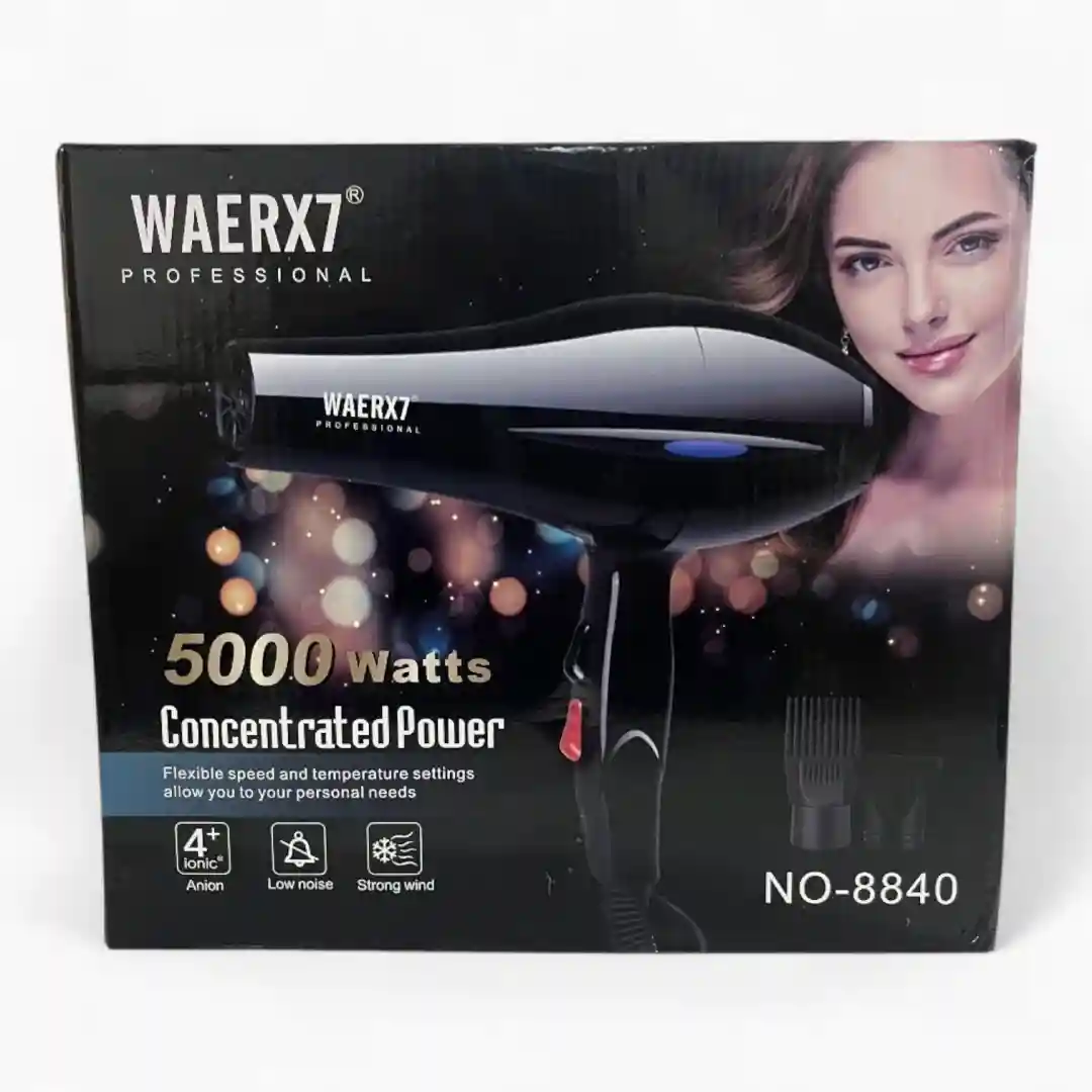 La Secadora WAERX7 Modelo NO-8840 ha llegado para simplificar tu rutina de peinado. Con su diseño negro y elegante, este secador no solo luce sofisticado, sino que está equipado con tecnología de punta.