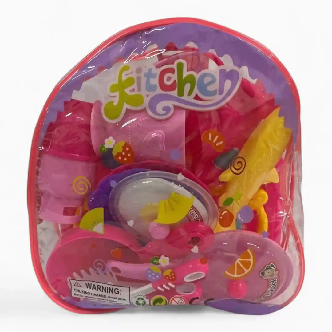 Este vibrante set está diseñado con una paleta de colores principalmente rosa y morado, muy atractivos visualmente, y viene empacado de manera práctica en una bolsa de plástico transparente con un asa —perfecta para llevar la diversión a cualquier sitio, ya sea a casa de la abuela o al patio de juegos.