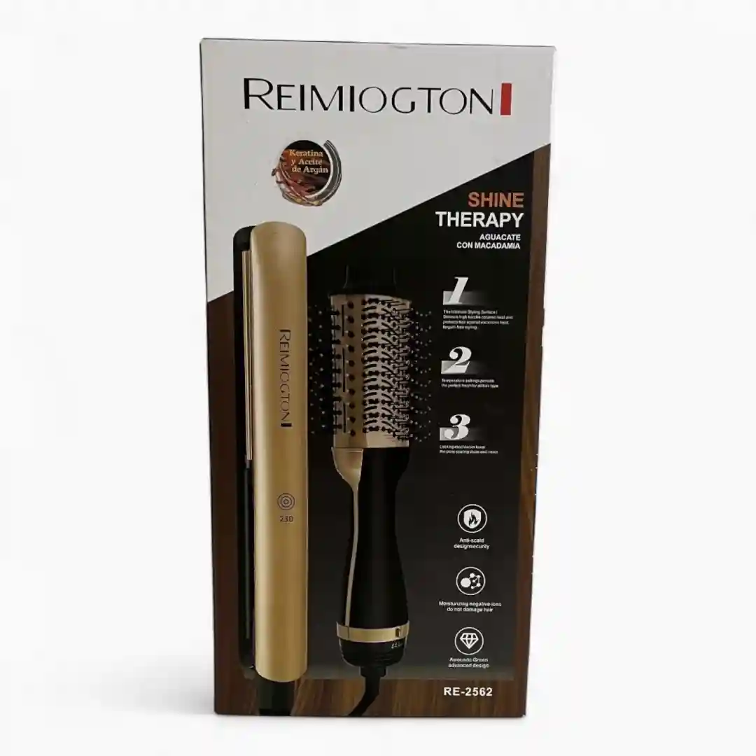 ¿Estás buscando ese acabado de peluquería: liso, brillante y con volumen, pero sin el daño del calor excesivo? ¡Ya lo encontraste! Te presentamos el Set 2 en 1 de Plancha y Cepillo Secador «Shine Therapy» (REF: RE-2562). Este dúo de herramientas de styling es un verdadero cambio de juego porque te permite alisar o estilizar tu cabello con un brillo espectacular, mientras lo estás cuidando activamente.