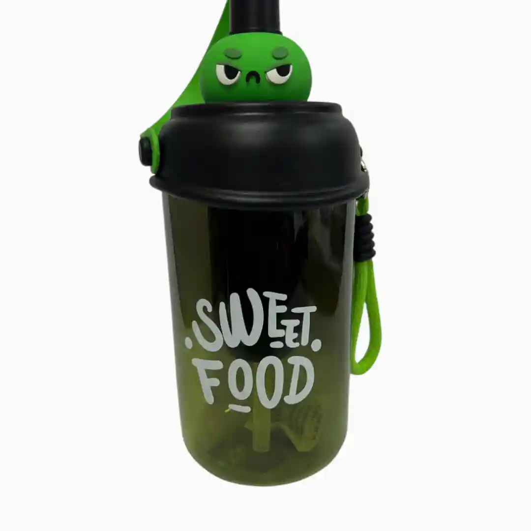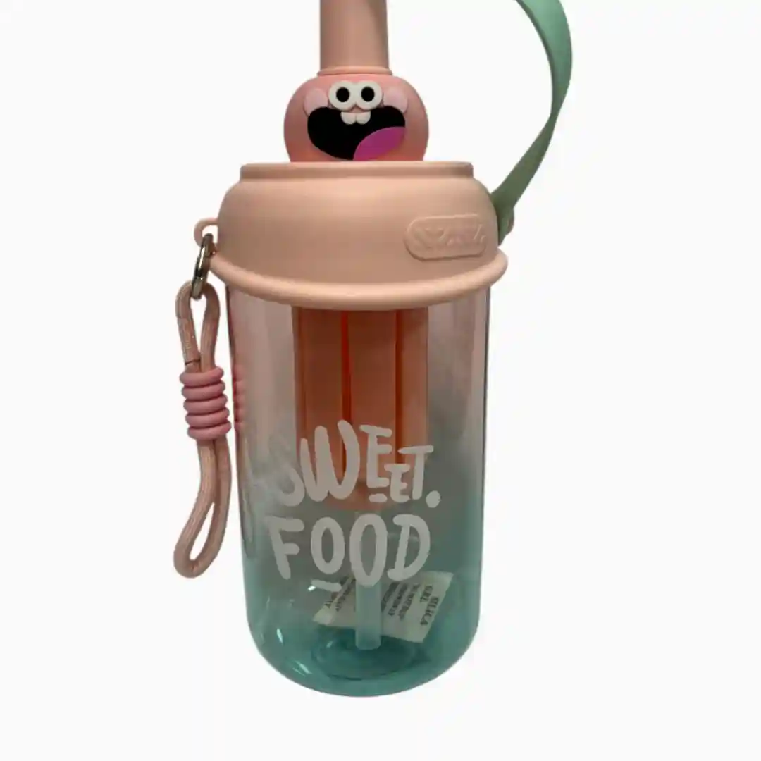 • Diseño: Vaso transparente con la frase «SWEET. FOOD» y un acabado degradado. La tapa incorpora un diseño de figura divertida y un pitillo interno. Incluye una correa para la mano y un sujetador de silicona para un transporte cómodo y seguro.